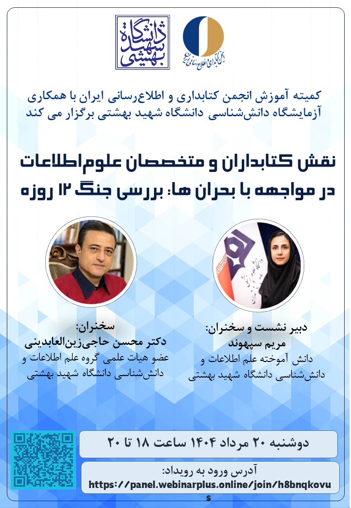 عنوان: نقش کتابداران و متخصصان علماطلاعات در مواجهه با بحرانها: بررسی جنگ ۱۲ روزه